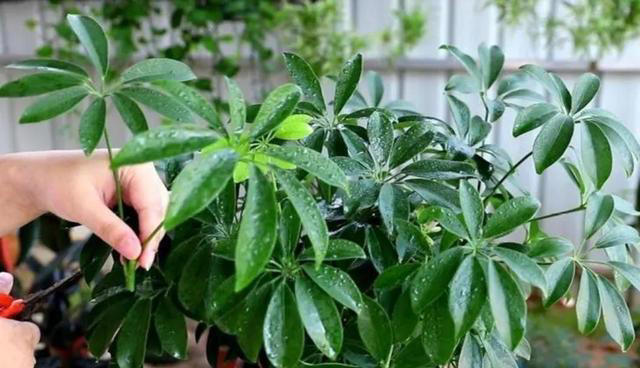 环境管理:剪完后将鸭脚木放在有散射光的通风处,避免阳光暴晒和空调、冷风直吹,适宜的温度在 15-25℃之间,利于伤口愈合,待新芽萌发后,再慢慢恢复正常光照。