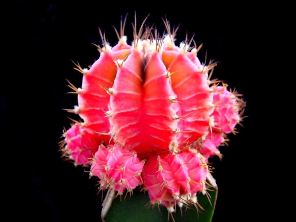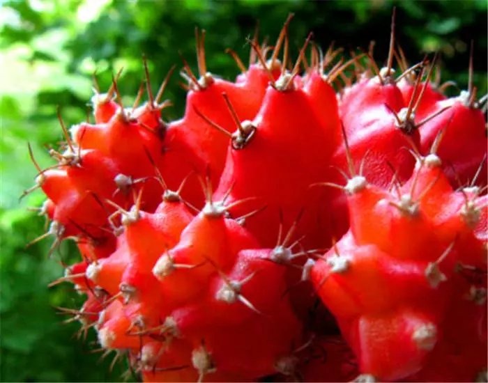 球体:茎呈扁圆球形,直径 3-4 厘米,有 8 条棱,具突出的横脊。球体颜色丰富,有鲜红、深红、橙红、粉红或紫红色等。刺座小,无中刺,辐射刺短或脱落。