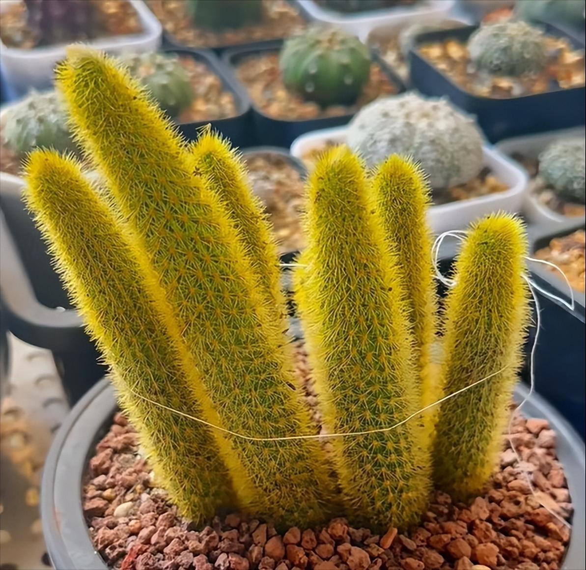 黄金钮(Borzicactus aureispina)是仙人掌科群蛇柱属的多年生肉质植物。