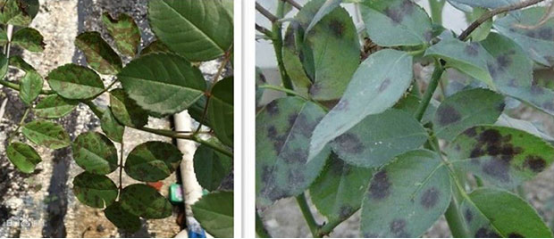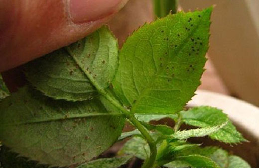 8.月季黑斑病症状:感染初期为紫褐色至褐色小点,之后演变为黑色或者深褐色。高温多雨季节,病菌借助雨水、喷灌水飞溅以及昆虫传播。防治措施,减少淋雨,减少叶面喷水,忌晚上浇水。发生病害时摘叶清理病叶,可用杜邦福星、高照等来治愈。
