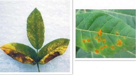 12.月季的锈病症状:春季萌芽期,病芽基部肿大,在1-3层鳞片内长出大量桔红色粉状物,象朵小黄花;有的弯曲呈畸形,15-20天后枯死。嫩叶受害后,先在叶正面上,丛生黄色小点状孢子器,后在叶背面生成桔红色孢子堆。防治措施:注意通风保持干燥。发生病害时摘叶清理病叶,可选用百菌清等来治愈。