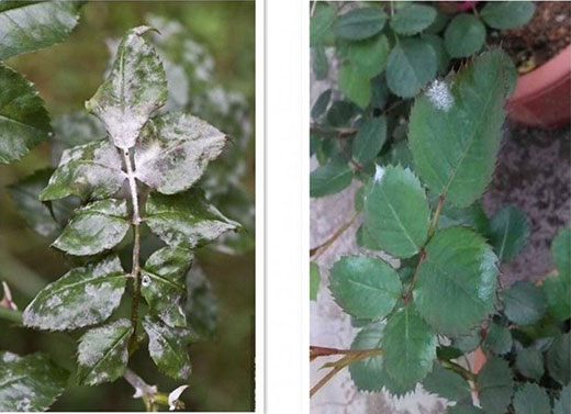 15.月季白粉病症状:初期为黄绿色不规则小斑,随着病斑扩大,叶面、嫩梢上会由一层白色粉状物,病害严重时会导致叶片变黄脱落,严重影响植株生长和开花。发病原因,多是5-9月高温干燥时,白粉菌在通风差、氮肥过剩等情况发生。防治措施:注意通风,补充水分,增加空气湿度,减少氮肥。发生病害时摘叶清理病叶,可用百菌清、代森锰锌、国光三唑酮等来治愈。
