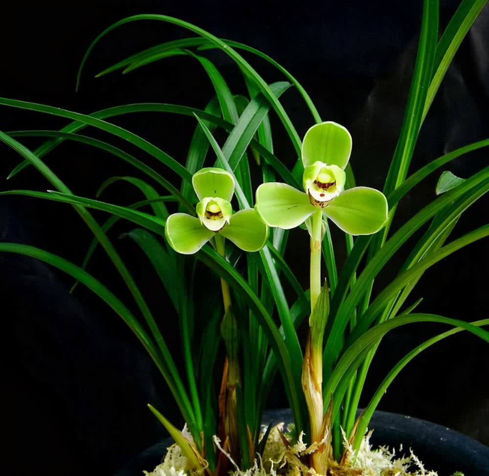 花:2–3 月开花;花莛挺拔,着花 1 朵;花型为标准梅瓣,外三瓣短圆紧边,捧瓣为软蚕蛾捧,舌瓣是端正的刘海舌,不卷;花色嫩绿 / 翠绿色,纯净无杂,香气清幽持久。