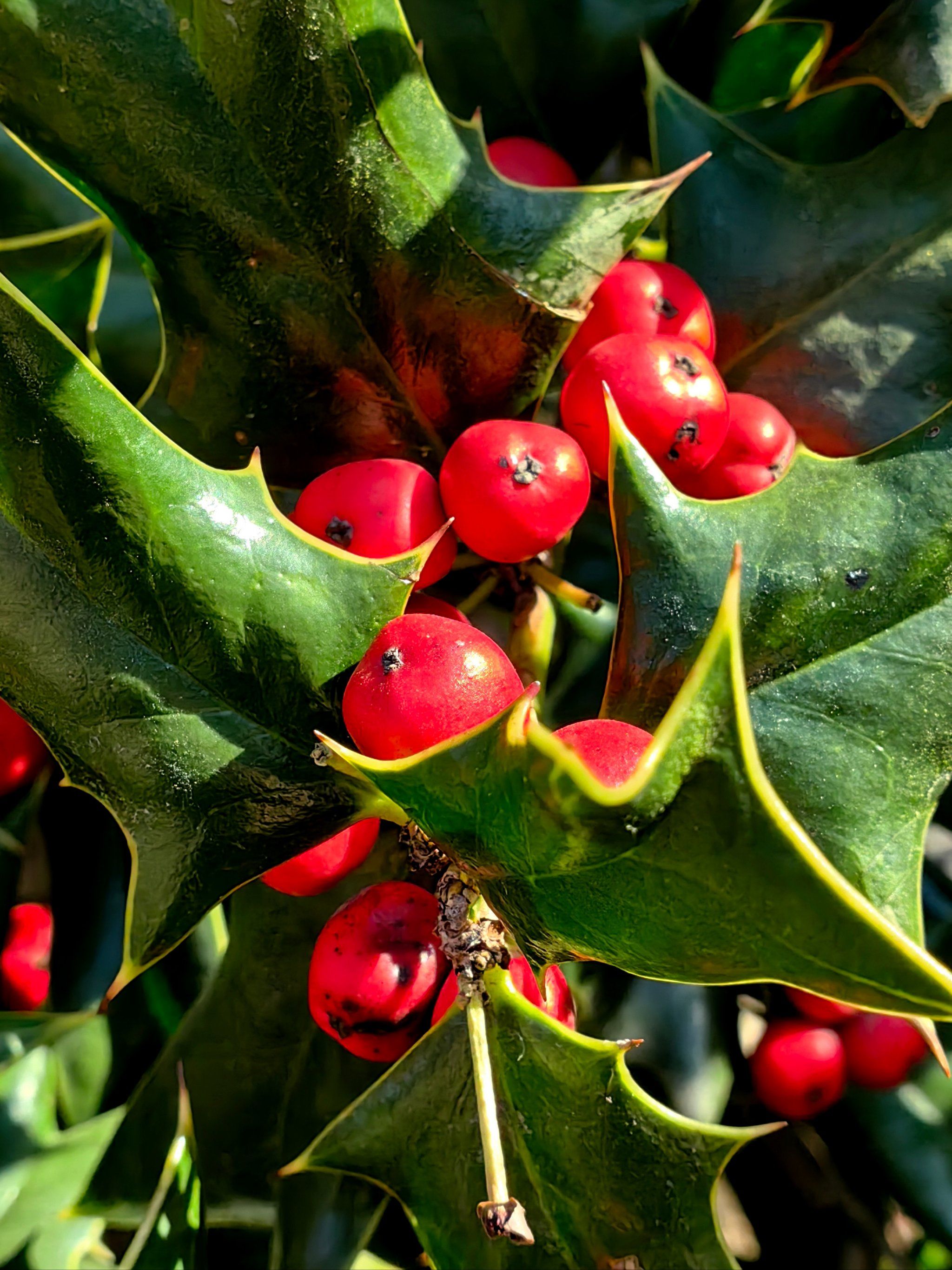 叶片:硬革质,四角状长圆形或卵形,深绿有光泽;叶缘常具 5 枚尖锐硬刺(顶端 1 枚,两侧各 2 枚),是其标志性特征,也有少刺 / 无刺的园艺变种(如无刺枸骨)。
