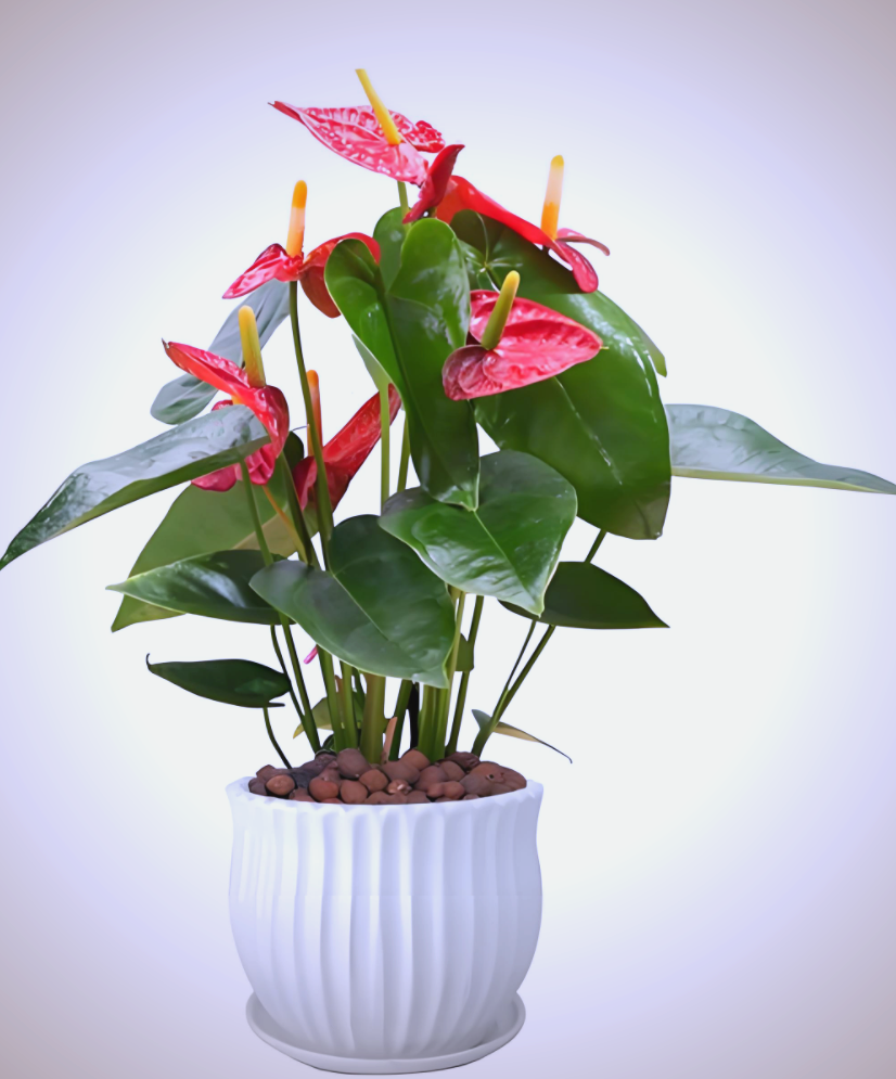 火红的佛焰苞色泽艳丽持久,心形花朵象征爱心与幸运,寓意热情似火、一心一意、鸿图大展。作为传递新年祝福的绝佳载体,红掌摆在家中,瞬间点亮红火年味,寄托对事业与生活的美好期许。