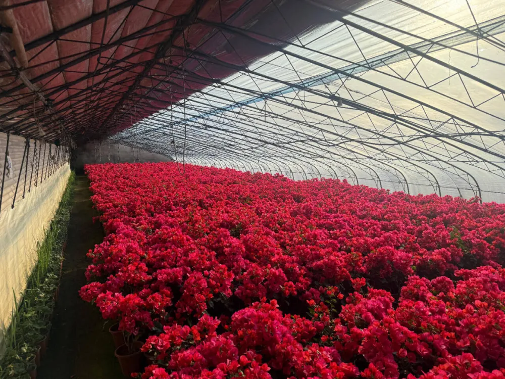 走进花卉基地的暖棚,嫣红、艳紫的三角梅花瓣层层叠叠,尽显“繁花似锦”的喜庆寓意,成为装点庭院阳台的热门选择;被誉为“君子之花”的君子兰叶片宽厚翠绿,橙红色花朵饱满硕大,承载着“君子纳福、事业顺遂”的美好祝愿;粉白、紫红相间的仙客来则象征“仙客临门、阖家欢乐”,成为春节亲友馈赠的佳品。