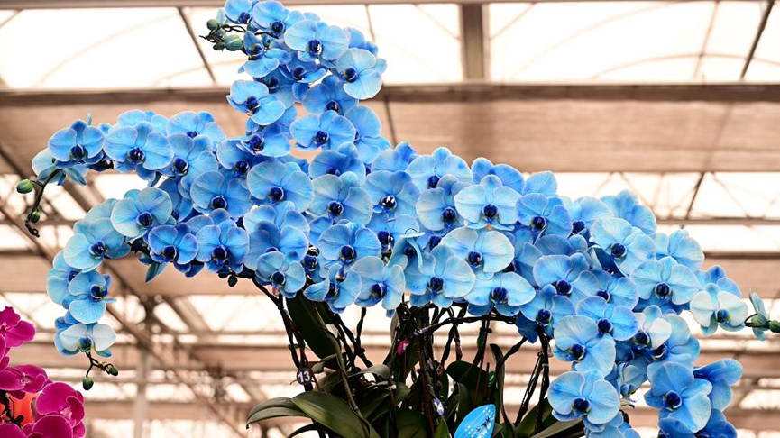 记者日前探访北京花卉市场发现,春节临近,年宵花市场正热闹升温,这里有:蓝色“马”形蝴蝶兰