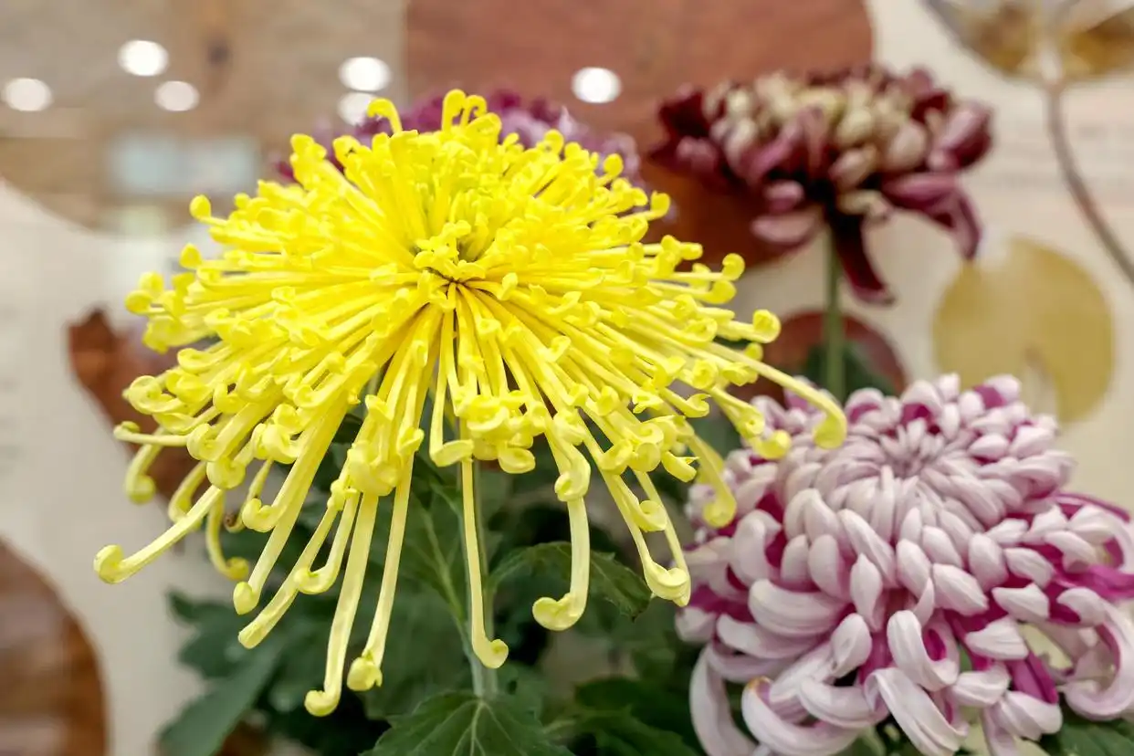 在一片姹紫嫣红中,几盆独本菊很醒目,花朵色艳、杆直,有碗口那么大,除了金菊、粉菊,还有稀少的绿菊花。它们出自东四街道的居民之手。