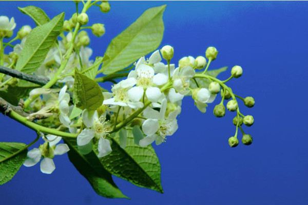 形态特征:株高可达 15 米。树皮粗糙且多斑纹,老枝紫褐色或灰褐色,有浅色皮孔。叶片椭圆形、长圆形或长圆倒卵形,边缘有不规则锐锯齿。总状花序具多花,花直径 1-1.6 厘米,花瓣白色,长圆形。核果卵球形,直径 8-10 毫米,红褐色至黑色,光滑。