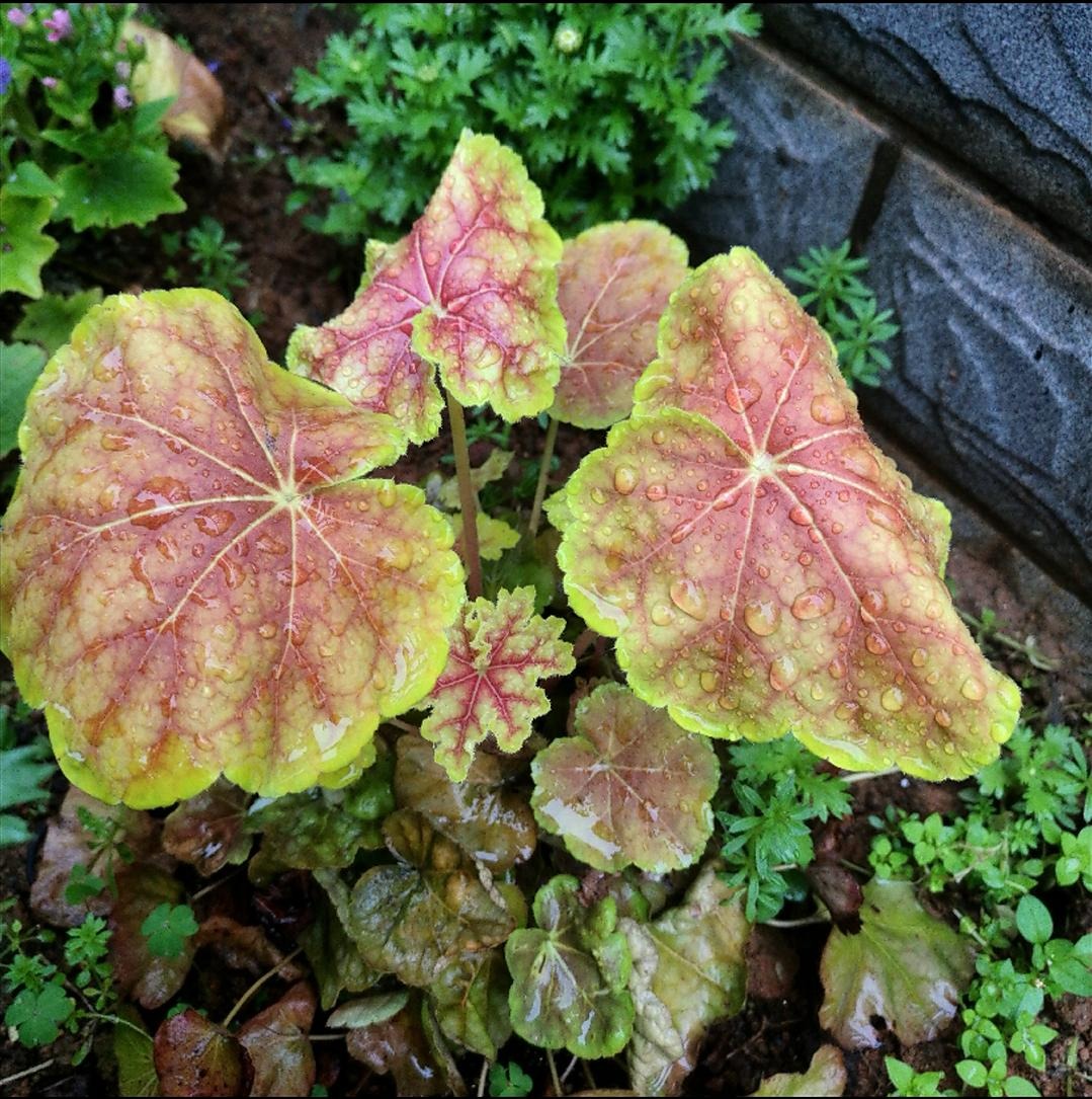 叶片:叶基生,呈阔心形,成熟叶片长 20-25 厘米,叶色丰富,有绿色、金色、橙色、红色、紫色、黑色等多种颜色,且不同季节叶色会有变化,部分品种叶片背面也有鲜艳色彩。