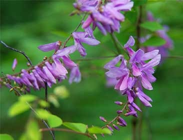 花:腋生总状花序,花为淡紫红色至粉紫色的蝶形花,长约 1.5 厘米,雄蕊 10 枚呈 9+1 的二体雄蕊;花期 5–7 月,花期长达 50~60 天,有香气。