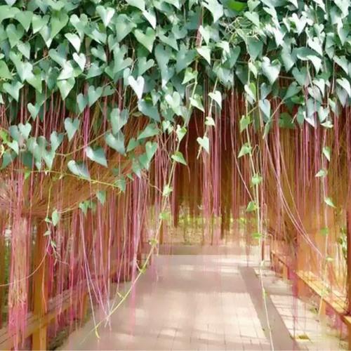 主要价值:锦屏藤的气生根多且长,主要应用于棚架、篱垣、绿廊等的盆栽或垂直绿化,具有遮阴、造景、屏障、休憩、隔离及装饰的功能,能营造出如 “一帘幽梦” 般的梦幻景观。
