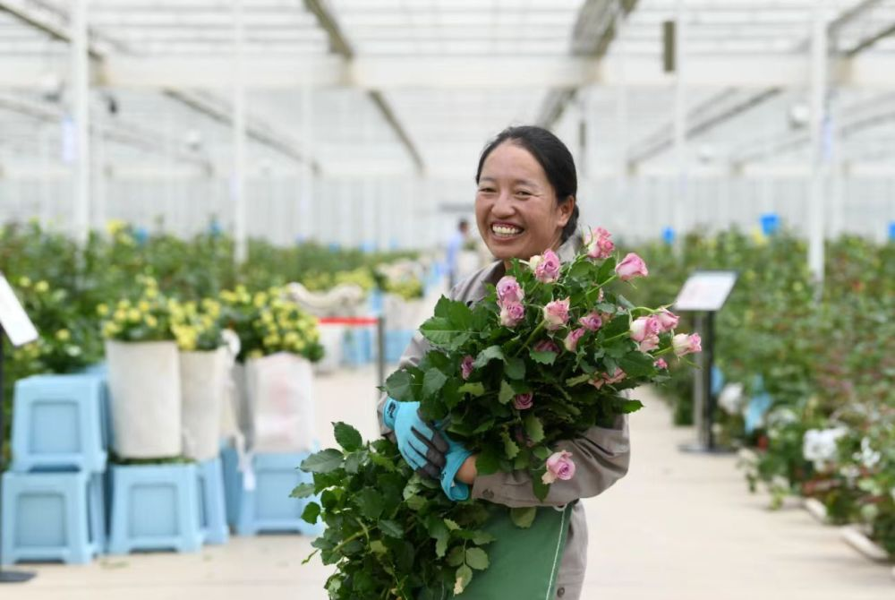 在35万平方米的现代化温室里,田间组长和月华每日与玫瑰为伴。回顾刚刚过去的2025年,一个日期深深印刻在她的记忆里。“过去一年对我来说是意义非凡的一年……让我印象最深刻的一件事情是3月19日习近平总书记来到我们园区。”她动情地回忆,这个日子与她个人职业生涯的起点奇妙重合——4年前的3月19日,她第一次怀揣梦想走进园区。当习近平总书记走入田间,亲切询问他们的生活与收入,并称赞“种的花漂亮”“管理能力强”时,那份激动至今鼓舞着她前行。这份鼓舞化作了实干的动力,过去一年,她与工友们用两个月时间完成了37.5亩玫瑰从旧式基质条到新型PE槽种植模式的全面升级改造。“看到一排排整齐的玫瑰在苗床上拔地而起、一朵朵玫瑰开得正艳时,我们的笑容很灿烂,我们心里也更有底气了。”对她而言,新的一年,小目标是实现田间管理与工人管理能力的双重提升。春节,她把团圆的机会让给家远的同事,选择坚守,因为“在家门口就业,能挣钱陪伴家人两不误”。