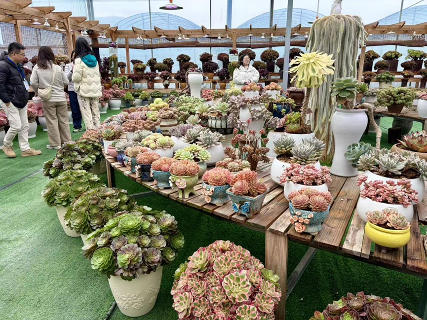参访团漫步在周宁城乡,目光所及之处,皆是花卉产业蓬勃发展的景象。在浦源花鲤小镇,静宇园艺的多肉园里品种繁多、造型别致,年销售额超百万元;在七步镇后洋村,三杉生物科技的组培楼里,多肉种苗正源源不断培育出来,高端多肉组培苗全国市场占有率已达65%;而在福建馨慧兰园艺有限公司的智能温室大棚里,文心兰鲜切花年产量达500万枝,采收旺季日均销售2万枝,产品畅销北上广及香港等多个城市。
