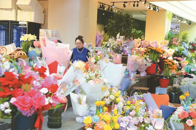 “看网上有人说,来这的人,没人能空着手走。真的一点也不夸张!”第一次来“打卡”的90后王晶菁抱着一束鲜花,从市场入口处一家名为“爱花达人”的花店走出。与传统包装不同,这束花被装在一个“大信封”里。“老板说它叫‘春日来信’,我一下子被戳中了!超浪漫,好像把春天打包了。”