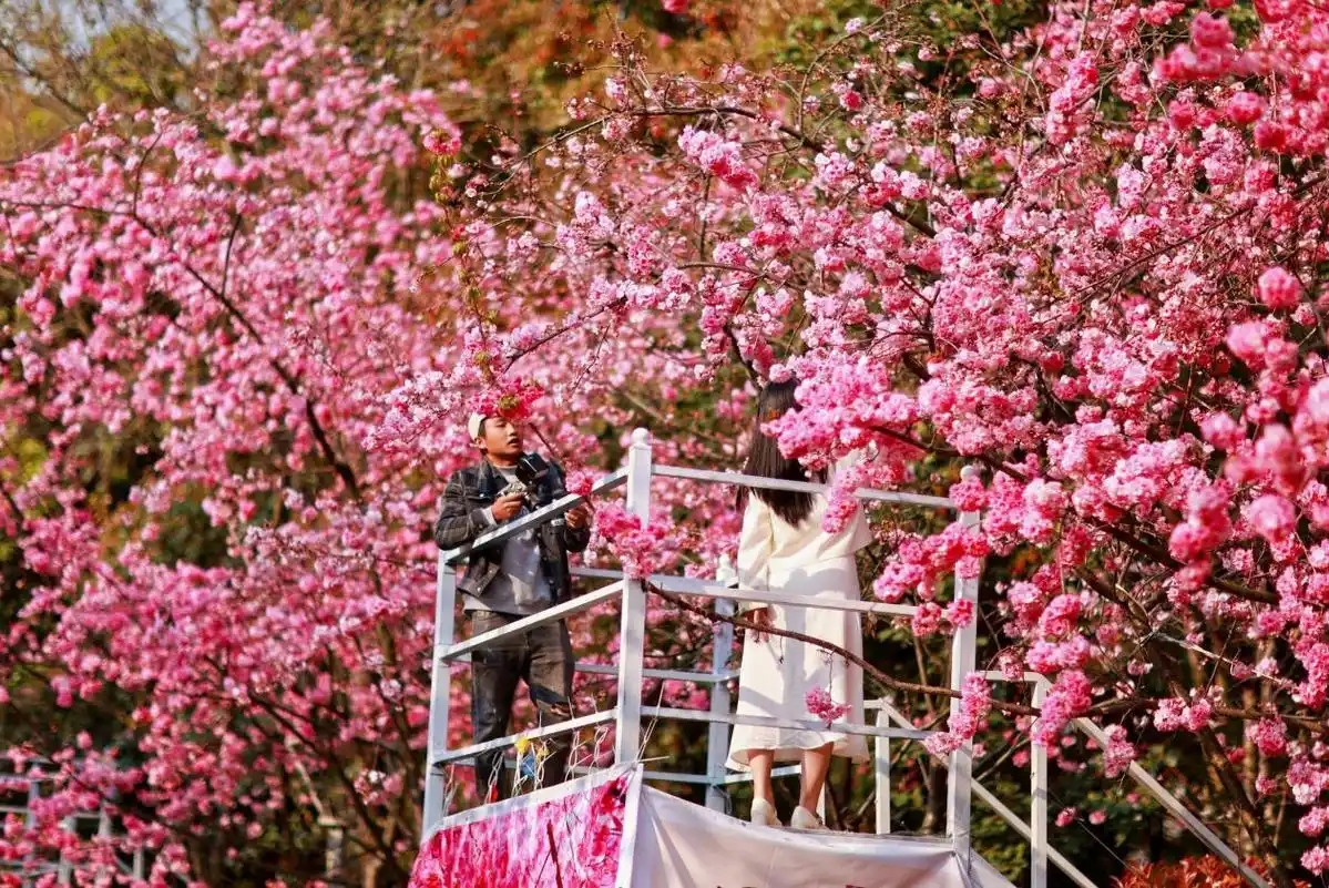 为了把赏花经济做得更大更强,呈贡还在不断创新消费场景,全力推动文旅、商业深度融合,想方设法释放区域消费潜力。比如联动洛龙公园周边的商业综合体,推出“春日赏樱消费券”、主题春日市集,还有免费停车等便民惠民措施,打造“公园+商场”的全新消费模式。这样一来,既优化了游客游园的体验,又实实在在带动了商圈的人气。昆明市呈贡区吾悦广场总经理付洪分享了一组亮眼数据:洛龙公园樱花节期间,吾悦广场的客流比平时增长了35%,零售业态销售额增长了38%,周边的便利店、文创摊位销售额涨幅也达到了30%,有力推动了区域消费提质升级。