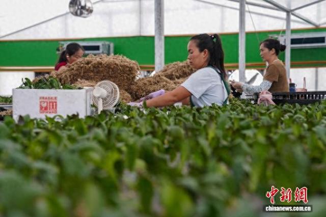 中新网南宁9月15日电(刘汉琪)近日,在广西南宁市上林县粤桂协作花卉乡村振兴现代农业产业园的一家花卉企业内,工人正忙着为蝴蝶兰育苗。该企业的蝴蝶兰等产品销往中国国内和东南亚国家市场。