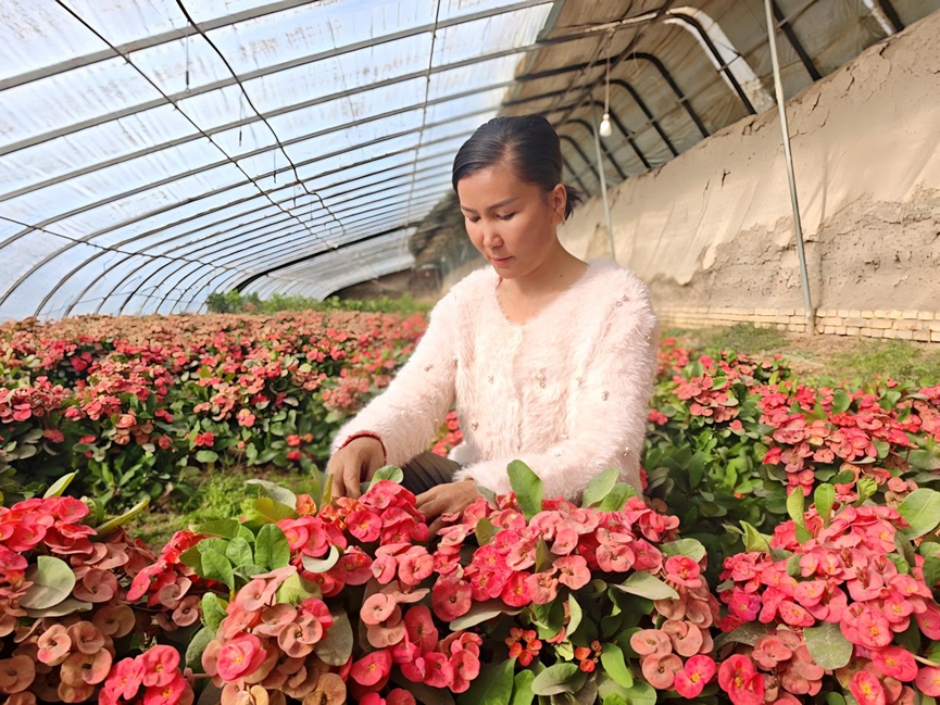 村民阿依提拉·热西提从事花卉种植10余年,如今已熟练掌握大棚花卉种植管理技术,还担任了村里的技术管理员。她大棚里的鲜花不仅扮靓了乡村,更让她收获了可观的经济收入。